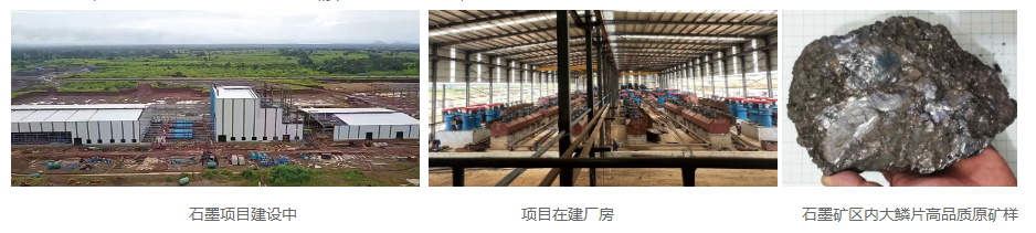 公司經(jīng)過 5 年時間完成了對該礦區(qū)的槽探、淺井、激電測量、鉆探等詳查勘探工作,確認此礦屬于品質(zhì)極佳的大鱗片石墨,平均品位 10%(國家規(guī)范石墨礦的邊界品位 2-3%,工業(yè)品位 2.5-3.5%),是制備高質(zhì)量可膨脹石墨、石墨烯、高級動力電池負極以及高壓力等級管道閥門等密封系統(tǒng)的優(yōu)質(zhì)材料。目前,公司正在開展年產(chǎn) 20 萬噸石墨精礦項目的建設(shè)工作,預(yù)計2023 年年底可投產(chǎn)。
